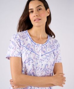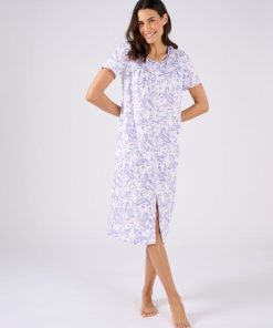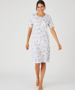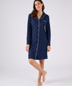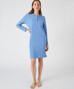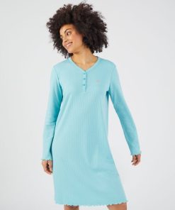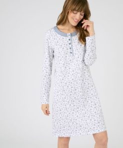 Femme Chemise De Nuit Maille Jersey Pur Coton Peigné – Chemise De Nuit – Damart.fr | Imp. Bleu