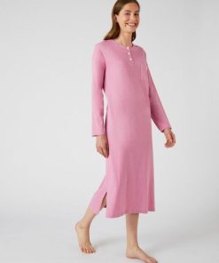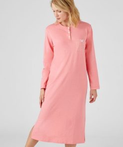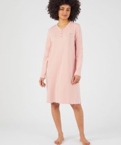 Femme Chemise De Nuit Maille Interlock Côtelée Douce Et Souple – Chemise De Nuit – Damart.fr | Rose