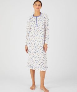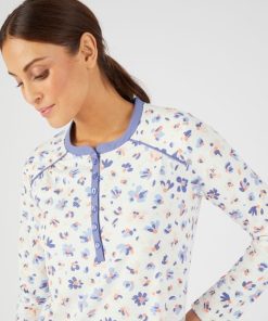 Femme Chemise De Nuit Thermolactyl Chauffe-épaules – Chemise De Nuit – Damart.fr | Bleu Fleuri