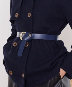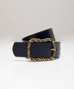 Femme Prêt-à-porter Ceinture À Boucle Dorée En Croûte De Cuir – Ceinture – Damart.fr | Bleu Marine