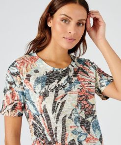 Femme Prêt-à-porter T-shirt Maille Dévorée Imprimée – T Shirt – Damart.fr | Corail Imp. Tropical