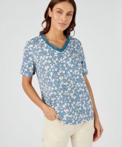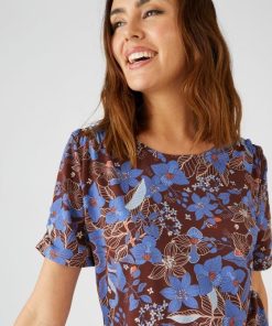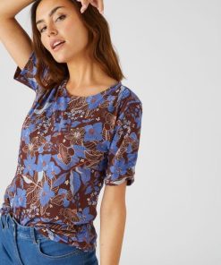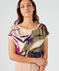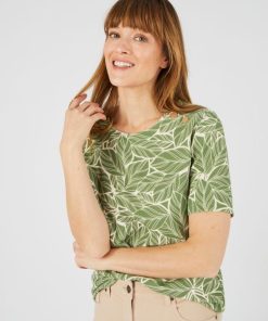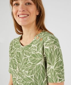 Femme Prêt-à-porter Tee-shirt Fluide Bimatière Imprimé. – T Shirt – Damart.fr | Vert Grand Feuillage