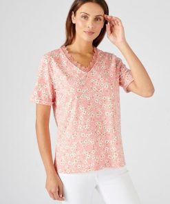 Femme Prêt-à-porter Tee-shirt En Maille Pointelle Raymond – Rouje X Damart – Damart.fr | Rose Floral