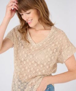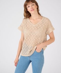 Femme Prêt-à-porter Tee-shirt Maille Fantaisie Effet Macramé – T Shirt – Damart.fr | Beige Clair