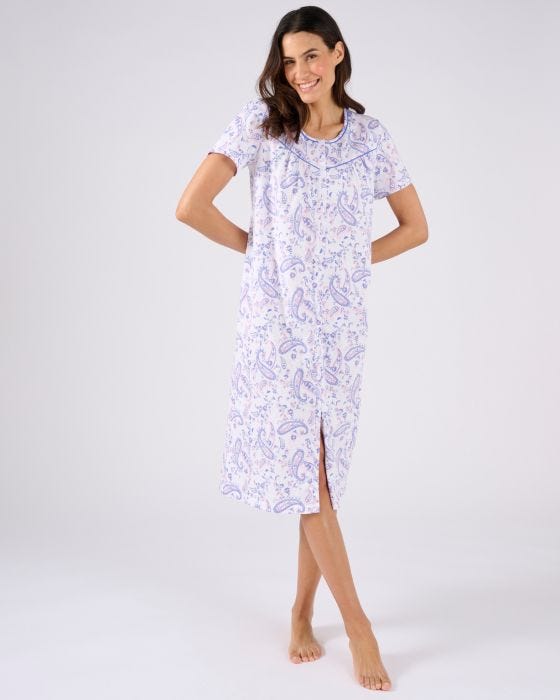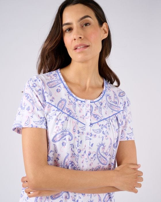 Un imprimé esprit cachemire très stylé pour cette chemise de nuit en coton, belle alliance de confort et de féminité