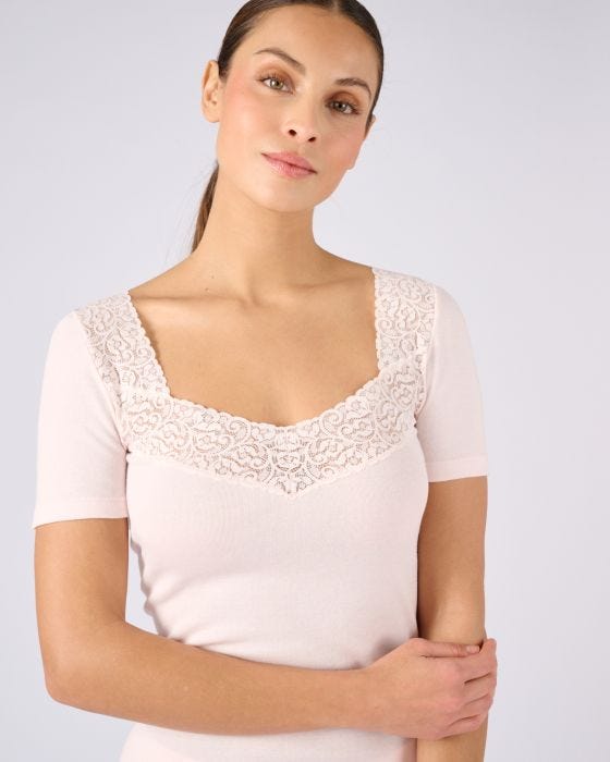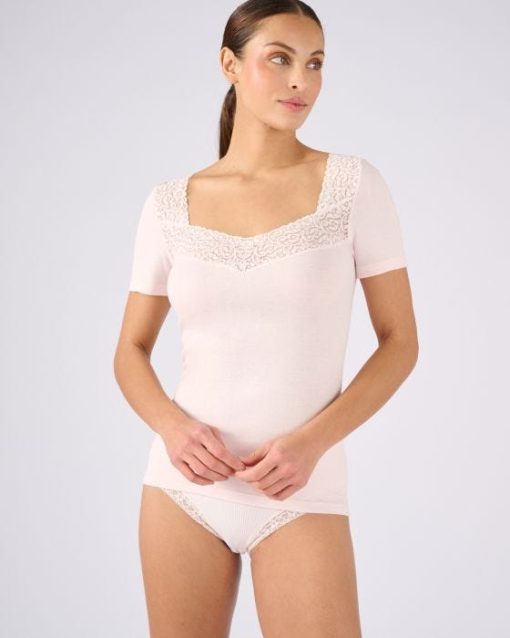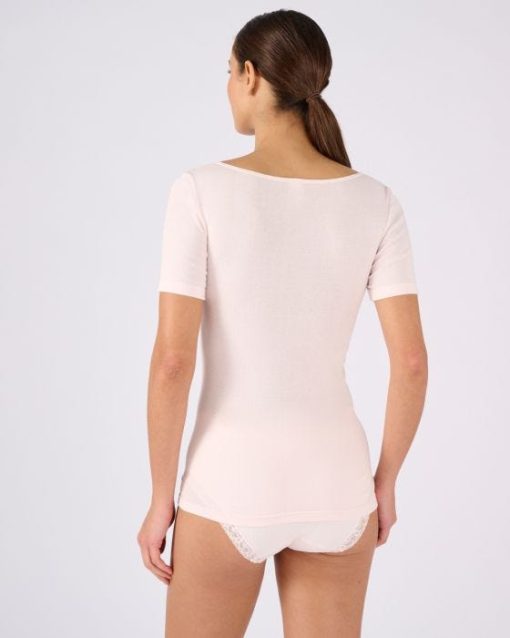 Damart Femme Men’s T-shirt Manches Courtes Maille Pur Coton Peigné | Rose