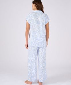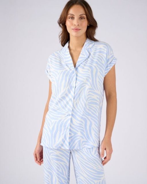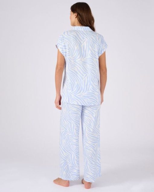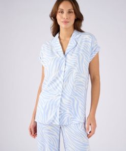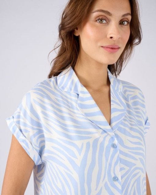 Jolie trouvaille de la saison, le pyjama pure viscose qui révèle un imprimé zébré dans des tonalités très douces. Le haut du pyjama femme a un col tailleur, des manches courtes à revers et il est fendu sur les côtés pour vous laisser libre de vos mouvements. Le bas 7/8ème du pyjama a une taille entièrement élastiquée (confort assuré !) et 2 poches. Longueur du haut de pyjama : 66 cm, entrejambe du bas de pyjama : 69 cm environ. Existe aussi, dans le même imprimé, en version chemise de nuit, à retrouver sur ce site. ŒKO-TEX® STANDARD 100 CQ1194/1 – IFTH.