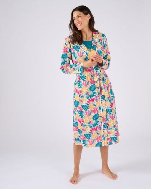Une robe de chambre qui nous embarque, dès le réveil, sous le soleil des tropiques… On adore !