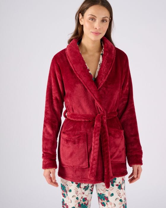 On est d’emblée séduite par le moelleux de la maille Thermolactyl de cette robe de chambre croisée, embossée au col châle, au bas des manches longues et à la ceintureà nouer, pour la petite touche de fantaisie. Et on est très vite conquise par le confort qu’elle nous apporte. La forme courte de cette robe de chambre chaude est idéale sur un pyjama ou une chemise de nuit courte. Et son coloris chaleureux convient parfaitement à la saison ! Longueur du peignoir femme : 74 cm environ.