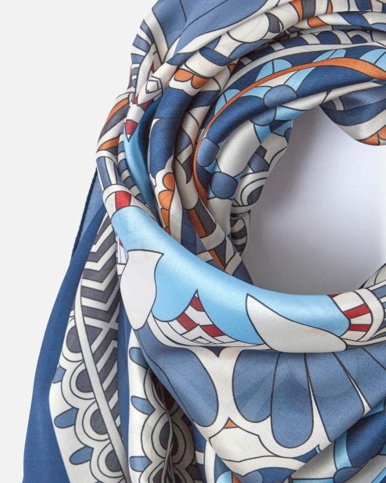 Un vent d’évasion souffle sur votre style ! Ce foulard aux motifs géométriques apporte une touche bohème et stylée à toutes vos tenues. Il se porte sans modération cette saison. Dimensions du foulard : 100 x 100 cm.