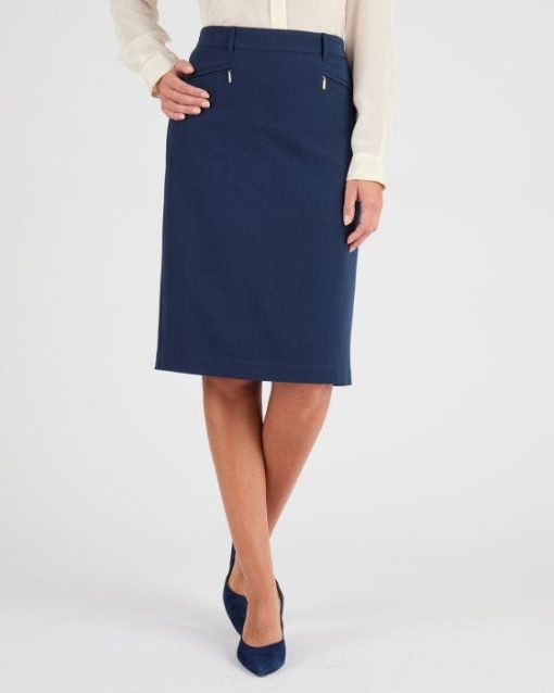 Envie d’une jupe qui combine élégance et confort ? Ne passez pas à côté de cette jupe féminine. Son tissu souple composé à 76% en polyester recyclé (un vrai plus…) est étoffé d’élasthanne pour un porté confort et une aisance supplémentaire. Sa coupe droite est structurée par une ceinture à passants plate devant, élastiquée au dos et par de fausses poches passepoilées qui dévoilent un faux tire-zip coloris argenté qui apporte la touche chic et stylée. Fente d’aisance au dos pour une démarche sans entrave. T-shirt, chemisier, pull… tous vos hauts seront désireux de s’associer à ce modèle femme. Doublure 100% polyester recyclé. Longueur de la jupe femme 64 cm environ.