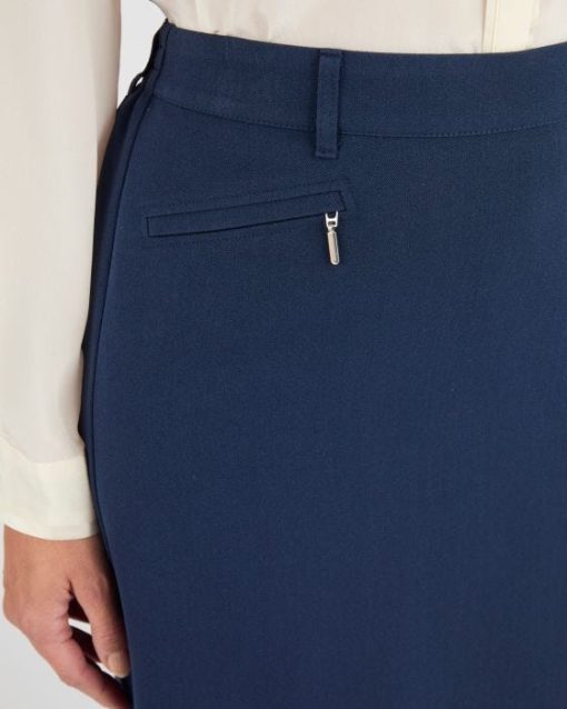 Confortable, élégante, le petit côté classique de cette jupe est déjoué par un faux tire-zip coloris argenté aux fausses poches passepoilées… décidément cette jupe donne le ton d'un automne raffiné.