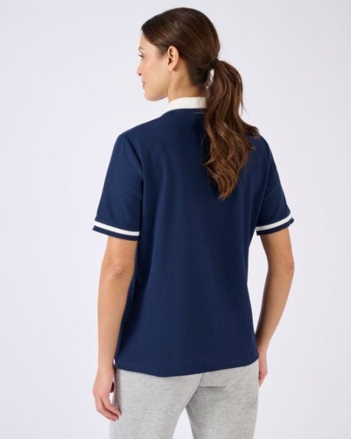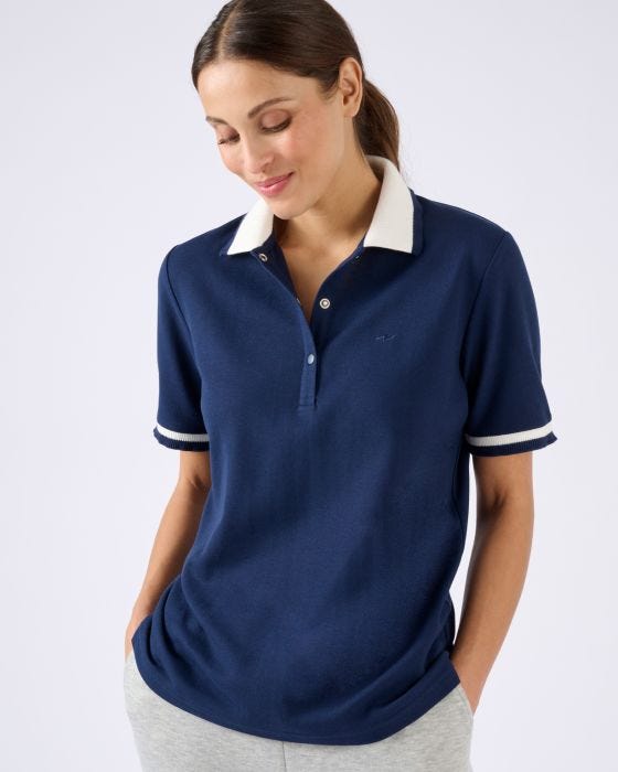 Ce polo en maille piquée, fabriqué en polyester recyclé et coton offre un confort et un style incomparable. Son col et ses manches en bord-côte assurent une tenue impeccable, tandis que le logo Damart brodé sur la poitrine ajoute une touche de chic. Parfait pour un look soigné en toute simplicité. Longueur du polo femme 61 cm environ.