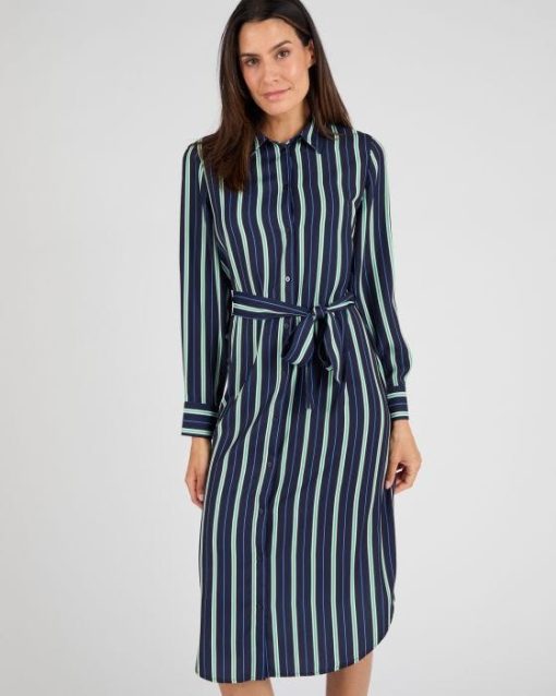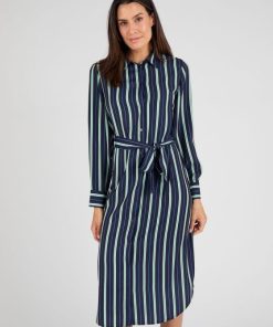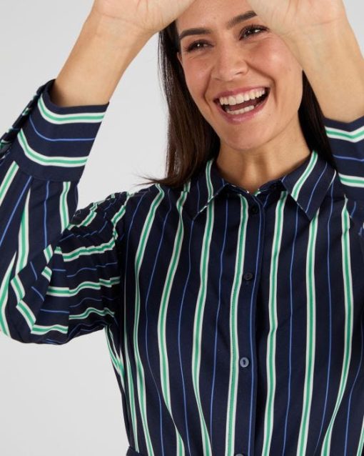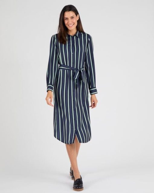 Facile à porter, la robe-chemisier est une valeur sûre du dressing. Et quand elle opte pour un si joli imprimé rayé, elle marque encore plus de points !