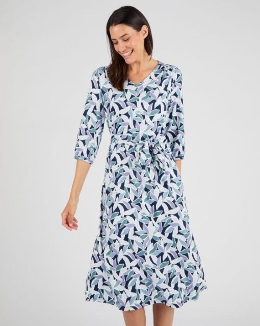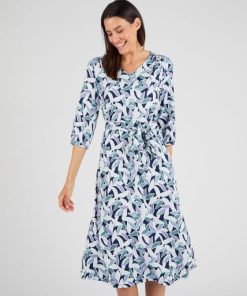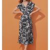 La saison des robes en maille chaude est annoncée ! Celle-ci se pare d'un imprimé feuillage joliment colorié et révèle une coupe tout en élégance et féminité