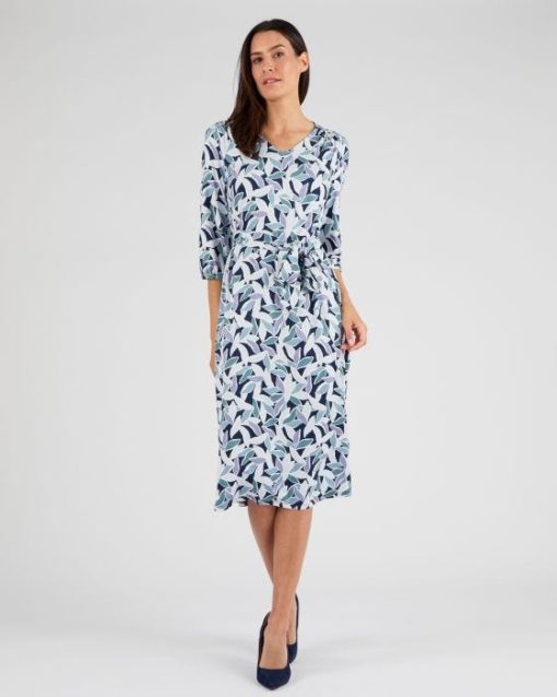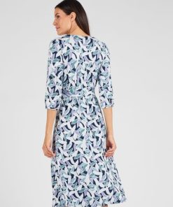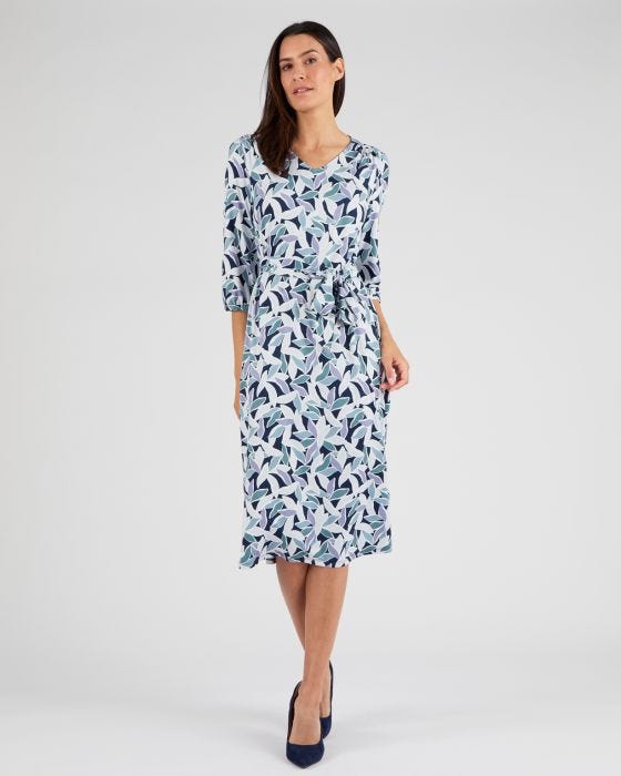 Pas question de se priver de porter une jolie robe quand les premiers frimas se font sentir ! Cette robe en maille chaude est là, pour nous réchauffer avec style ! En plus, elle est enrichie d’une touche d’élasthanne, pour vous offrir une agréable liberté de mouvements et encore plus de confort. Son encolure V vous fait un joli décolleté. Un jeu de fronces sous les empiècements épaules devant apportent de l’aisance. Les manches 3/4 de cette robe d’hiver sont terminées par un fin poignet boutonné. Une ceinture lien appuie doucement la taille. Avec sa longueur (107 cm environ), au-dessus du mollet,cette robe imprimée sera parfaite avec une paire d’escarpins, de petites boots ou pourquoi pas des bottes hautes.