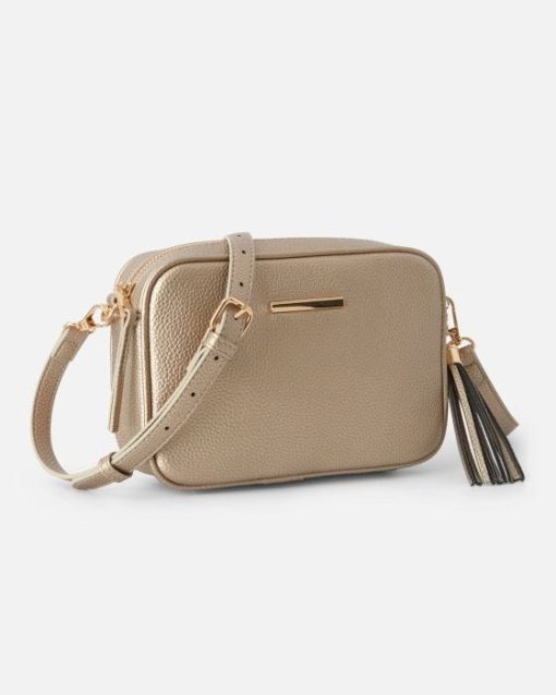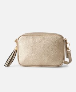 Chic et pratique ce sac coloris doré effet grainé est le must-have de votre dressing ! Son design élégant est sublimé par une barrette fantaisie dorée et une pampille stylée sur le côté. Il se porte à la main en pochette ou en bandoulière réglable et amovible, grâce à ses mousquetons très pratiques. Fermeture zippée coloris doré et doté d’une poche intérieure. Dimensions du sac femme 21 x 6 x 14.5 cm.