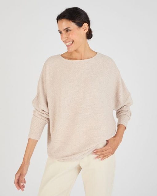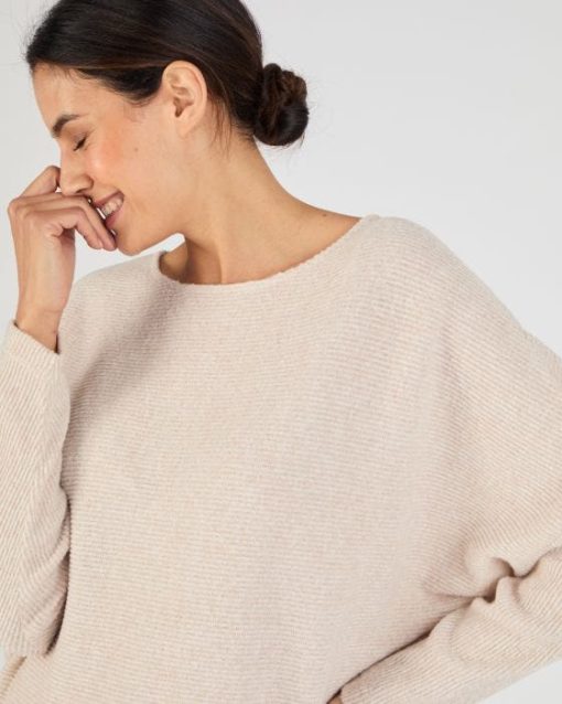 Optez pour une pièce tendance avec ce t-shirt col bateau et manches chauve-souris, parfait pour un look chic et décontracté. Avec sa maille texturée côtelée et sa coupe fluide moderne et élégante, ce t-shirt s’associe facilement à un jean flare pour une silhouette bohème ou à une jupe en jean pour une allure féminine et actuelle. Confectionné en maille chaude grattée, ce tee-shirt contient 79 % de polyester recyclé. Longueur du t-shirt femme 62 cm environ.