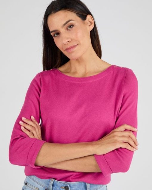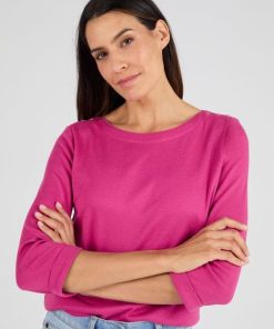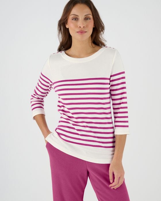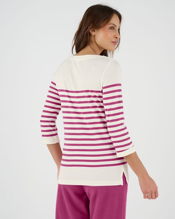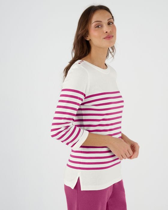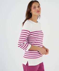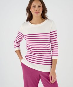 Damart Femme Prêt-à-porter T-shirt Uni Ou Rayé Manches 3/4 | Fuchsia Rayé
