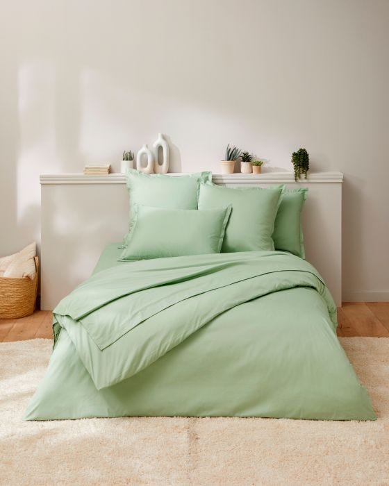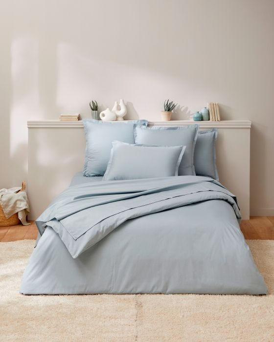 Douceur percale… Et si vous adoptiez la housse de couette unie pour laisser place à votre créativité et composer votre parure de rêve ?