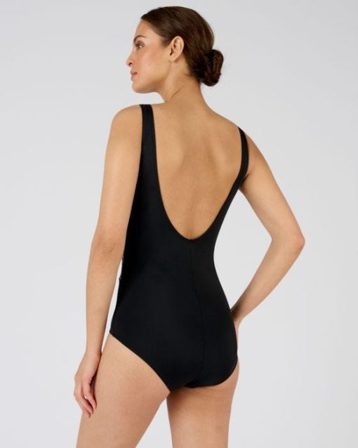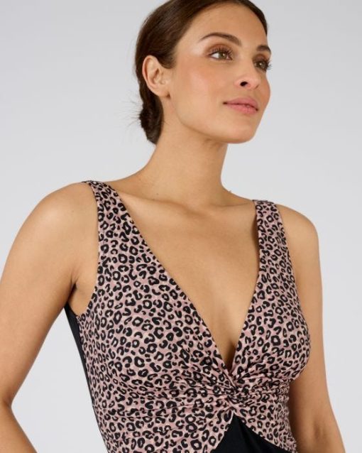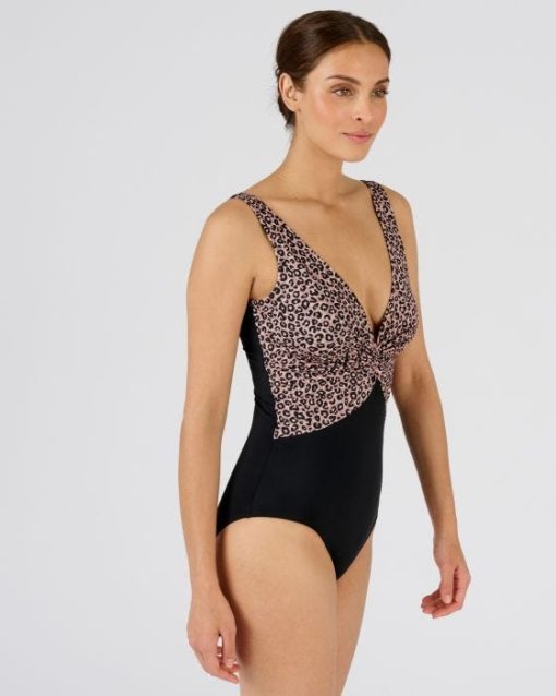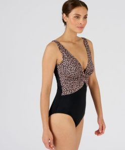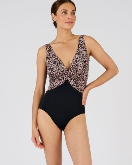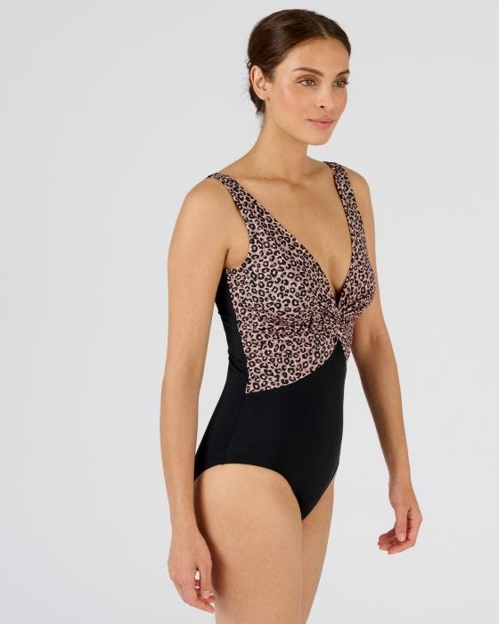 Le noir uni apprivoise l'imprimé léopard. Résultat : un maillot de bain tendance qui nous fait une très jolie ligne !