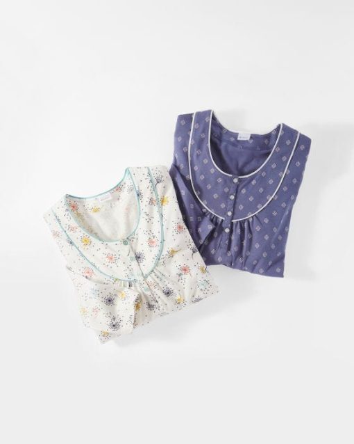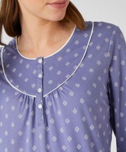 Ces chemises de nuit vous procurent la souplesse de la maille jersey et la douceur du coton peigné. Colletage contrastant à l’encolure ronde rapportée, soulignée d’un empiècement passepoilé, sur une patte 4 boutons devant. Manches longues. Longueur 122 cm environ. OEKO-TEX® STANDARD 100 CQ1194/1- IFTH.