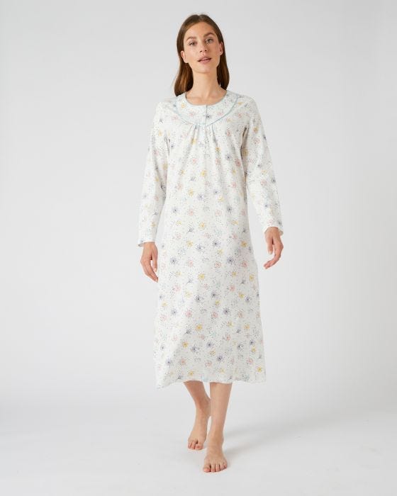 Une coupe confort et un imprimé élégant pour une chemise de nuit longue intemporelle.