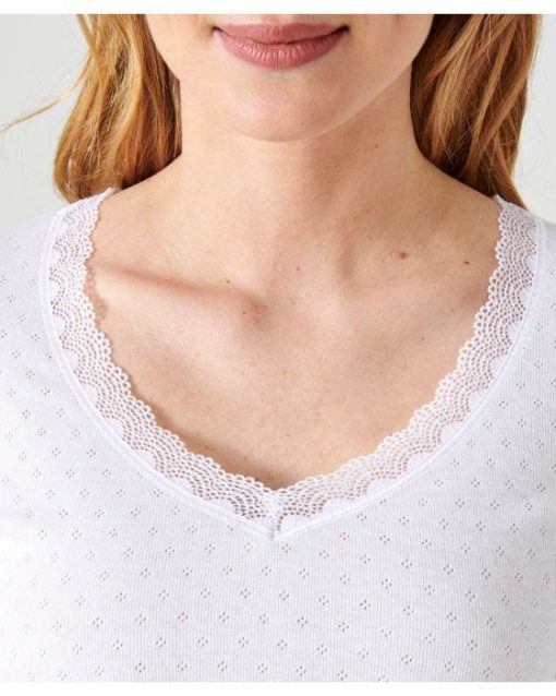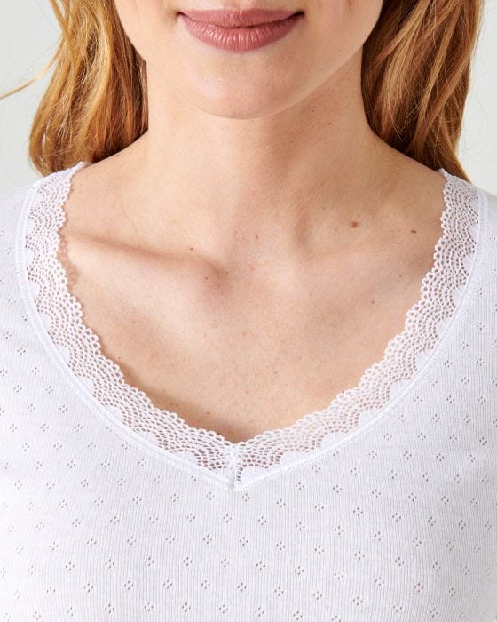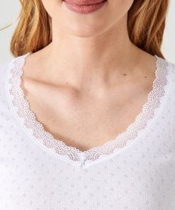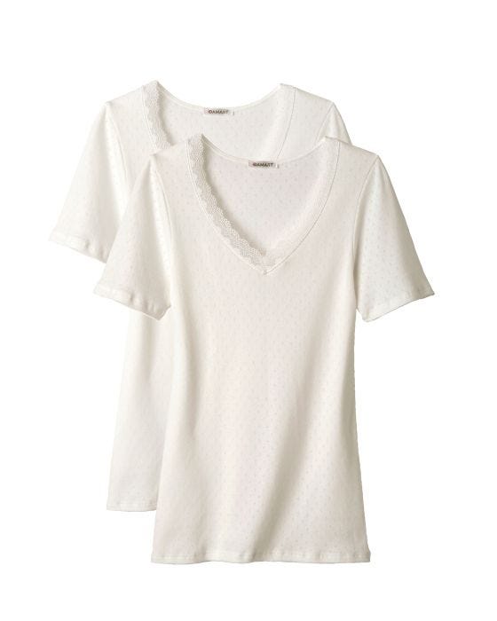 Femme Men’s Lot De 2 T-shirts Essential Maille Jacquard Et Dentelle Pur Coton Peigné – T Shirt De Dessous – Damart.fr | Blanc