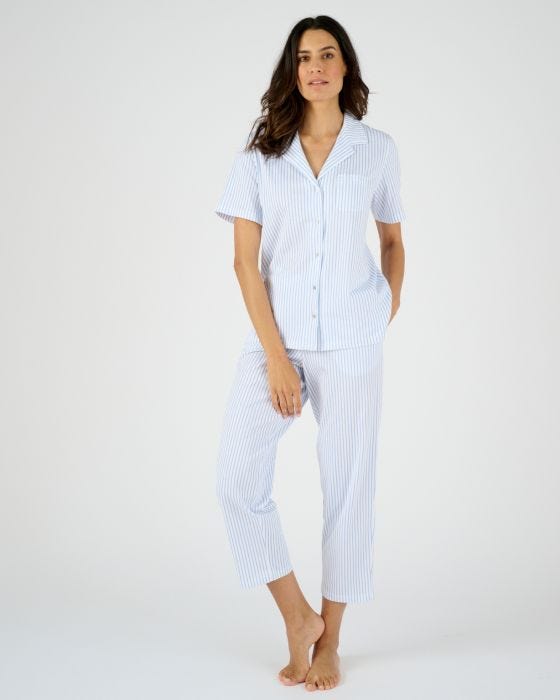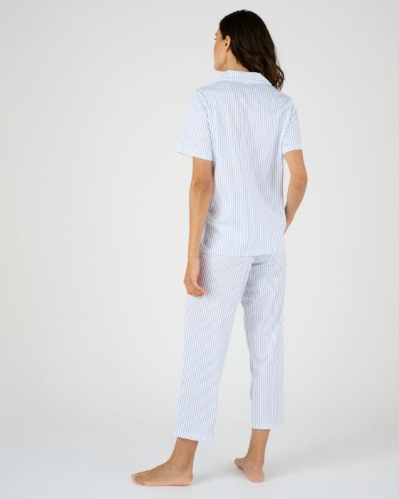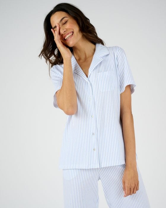Le traditionnel pyjama boutonné se met à l'heure d'été avec sa coupe 7/8ème tendance, sans sacrifier le confort avec sa maille jersey en pur coton !
