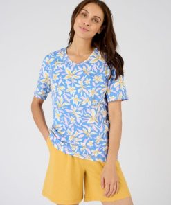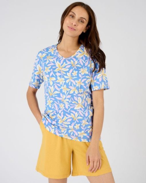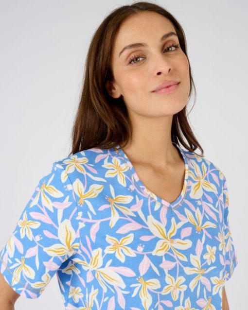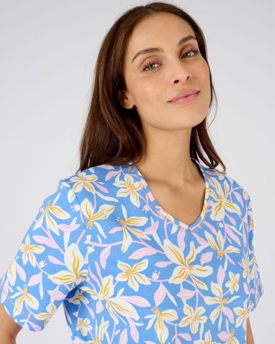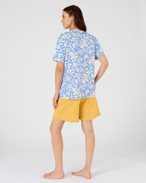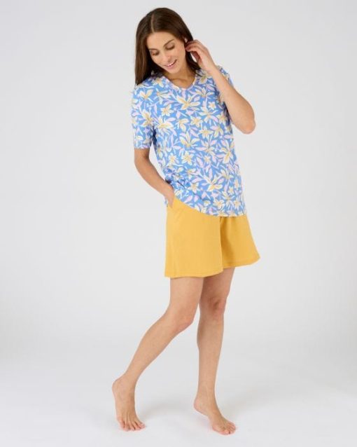 Ce pyjashort pour femme est un indispensable du vestiaire de nuit ! En pur coton peigné de bonne tenue, il s’habille d’une maille jersey souple et agréable à porter. Cet ensemble de nuit se compose d’un T-shirt manches courtes, col V finition biais et d’un short à taille élastiquée avec 2 poches. Simple, pratique et efficace ! Déclinés dans plusieurs coloris et imprimés, il met du pep’s et du style dans la penderie ! Découvrez toute notre collection nuit sur notre site. Longueur du haut de pyjama femme : 64 cm environ. Longueur d’entrejambe du bas de pyjama pour l’été : 13 cm environ. ŒKO-TEX® STANDARD 100 CQ1194/1 – IFTH.