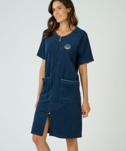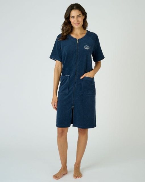 Sur une coupe revisitée, cette robe de détente manches courtes affiche une maille éponge douce et moelleuse, très agréable à porter pour la saison ! Elle s’enfile de jour comme de nuit pour des moments cocooning à la maison… mais on l’ose aussi pour aller chercher son pain au coin de la rue ou promener son fidèle compagnon ! Cette robe col rond est entièrement zippée pour faciliter l’enfilage. Ses emmanchures raglan sont un gage de confort. Pour le côté pratique, elle possède 2 poches plaquées. Pour le style, cette robe éponge se joue dans des coloris féminins et se pare d’une jolie broderie scintillante à la poitrine et de finitions passepoilées ! Longueur de cette robe de plage : 96 cm environ. OEKO-TEX® STANDARD 100 CQ1194/1 – IFTH.