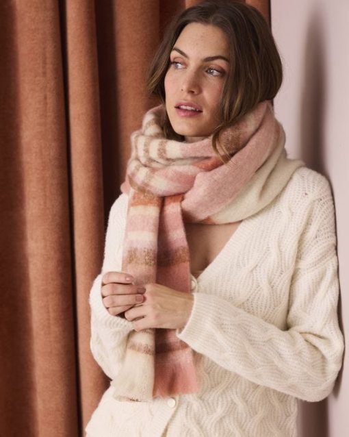 L’écharpe à carreaux n’a pas fini de nous étonner… Elle n’a de cesse de se renouveler et opte ici pour de chaleureuses tonalités de rose. Une véritable promesse de douceur. Cette écharpe chaude est soigneusement terminée par de fines franges. Dimensions : 205 x 37 cm.