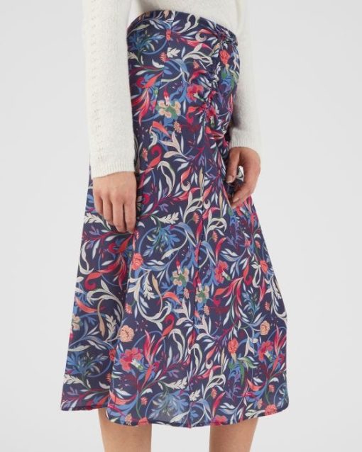 On est séduit par cette jupe féminine, qui s’habille d’un imprimé fleuri coloré. Son tissu crêpe reliéfé doux et fluide est agréable à porter. On aime sa coupe évasée confortable. On craque aussi pour sa fantaisie froncée sous la taille élastiquée confortable qui marque joliment la ligne. On l’associe à un pull moelleux ou à un tee-shirt à encolure drapée pour surjouer les effets de fronces. A imaginer avec des sneakers ou des boots, un top uni et quelques bijoux bien choisis… une pièce à glisser dans votre dressing mi-saison. Taille entièrement élastiquée sous tunnel. Fermée par glissière invisible côté. Pinces au dos. Longueur de la jupe femme imprimée 74 cm environ.