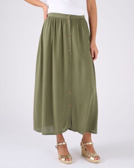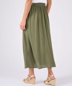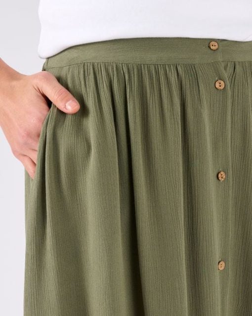 Pour un look décontracté, vous associerez cette jupe créponnée à un t-shirt basique ou un débardeur et une paire de baskets. Dans un style plus habillé, vous la porterez avec une jolie blouse et des sandales à talons. A moins que vous ne préfériez la mixer à un petit pull manches courtes et une paire de ballerines ? Cette jupe ample s’adapte à toutes les situations, un peu caméléon, non ?!Son tissu est en pure viscose Lenzing(TM) EcoVero(TM), moins gourmande en eau qu’une viscose classique. Pour votre confort (sans compromis sur le style !), sa ceinture est plate devant et élastiquée dos. Elle se porte toute boutonnée ou 2 ou 3 boutons ouverts pour dévoiler joliment le genou. 2 poches. Longueur de cette jupe évasée : 84 cm environ.