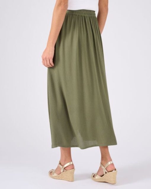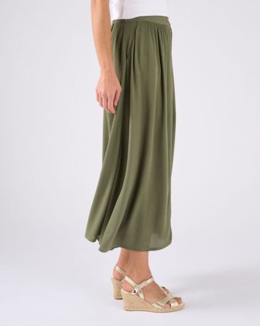 La jupe évasée, pièce phare du dressing s'offre la fraîcheur d'un tissu créponné en viscose Lenzing(TM) EcoVero(TM) pour s'inviter au coeur des beaux jours !