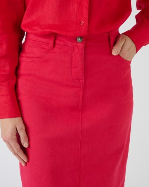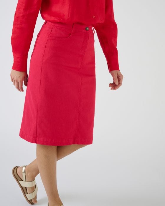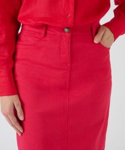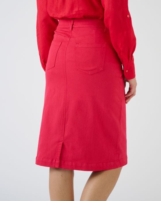 Cette jupe en denim confortable et extensible galbe la silhouette. Son renfort ventral invisible affinant vous assure un maintien parfait et un effet ventre plat. Look chic en coloris gris clair ou magenta avec une chemise blanche, fleurie ou rayée, des talons, un sautoir ou style plus décontracté avec un tee-shirt à écritures et des baskets en coloris indigo. Ceinture en forme à passants. Glissière, bouton métal et poches cavalières devant. Rehausse, fente d’aisance et poches plaquées au dos. Longueur de la jupe Perfect Fit by Damart 64 cm environ.