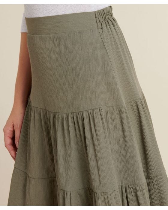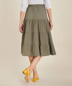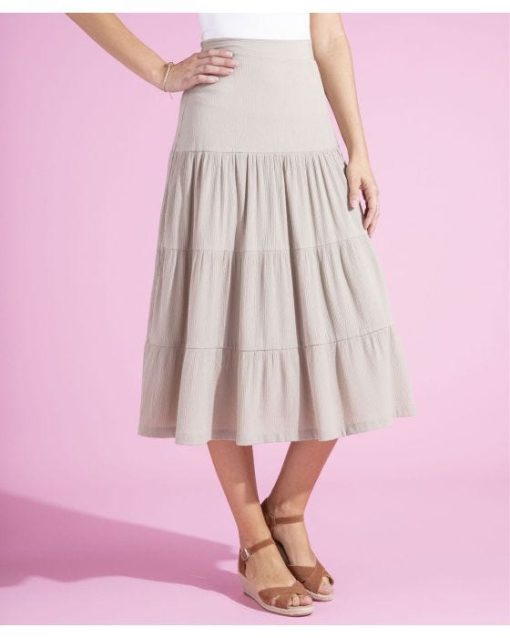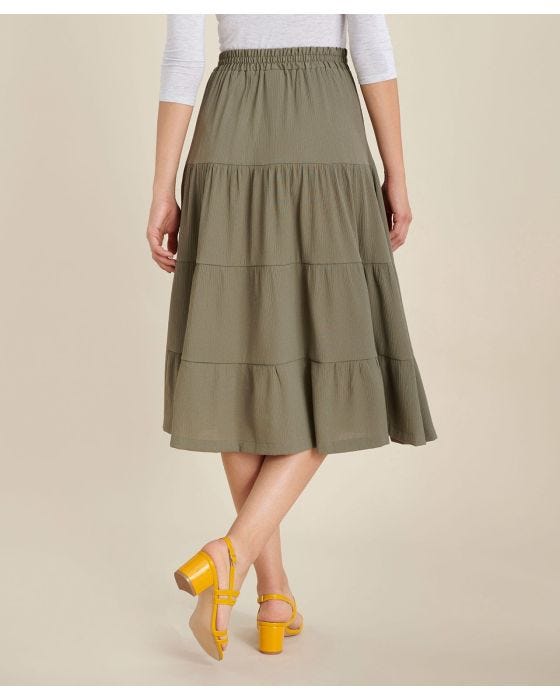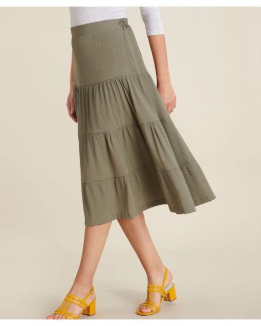 Une jupe idéale à porter pour les vacances. Sa coupe à volants libère une belle ampleur féminine… c’est très charme et agréable à porter. Ceinture entièrement élastiquée pour le confort. Longueur de la jupe 79 cm environ.