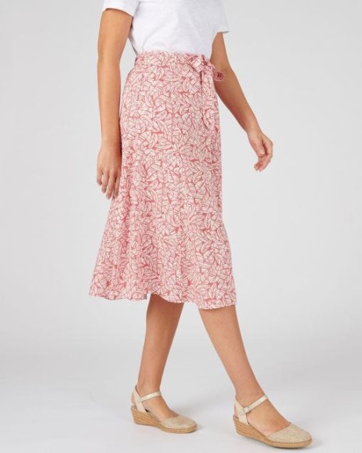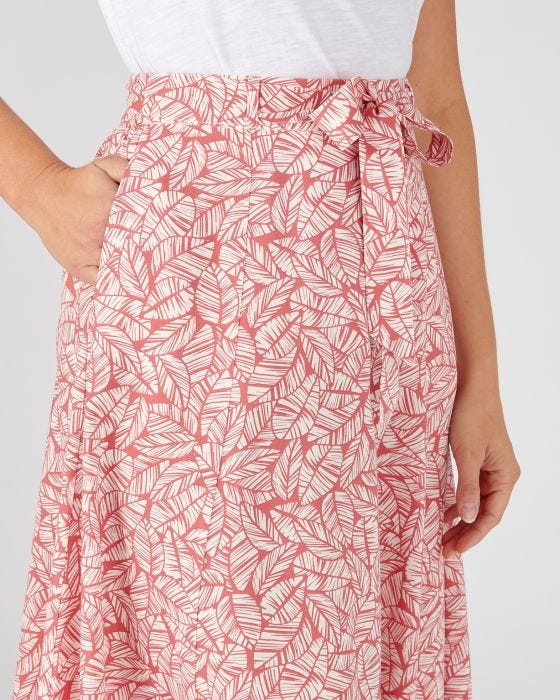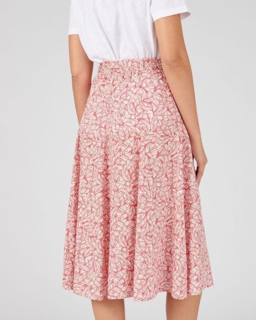 L'imprimé feuillage revisite avec modernité cette jupe ample en tissu fluide et léger, incontournable du vestiaire féminin.