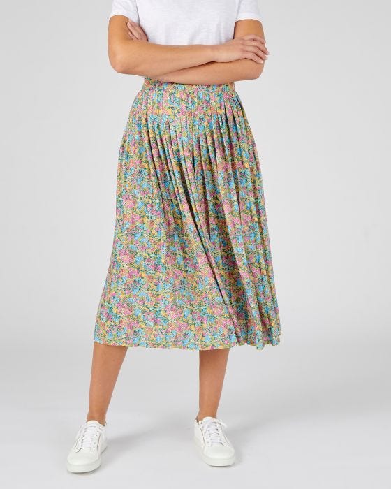 La jupe plissée soleil est la star de la saison et investit tous les dressings féminins. Sa structure maille crêpe assure un beau tombé à son plissé permanent. Enrichi d’élasthanne, elle offre un grand confort et vous laisse bouger librement. Une jupe plissée totalement dans la tendance de la saison et ornée de petits motifs fleuris rafraîchissants. On l’associe à un top ou un tee-shirt et des sandales pour un look d’été réussi. Confort de la ceinture entièrement élastiquée sous tunnel qui facilite aussi l’enfilage. Jeu de pli réguliers pour une belle ampleur à la base. Longueur de la jupe imprimée femme 74 cm environ.