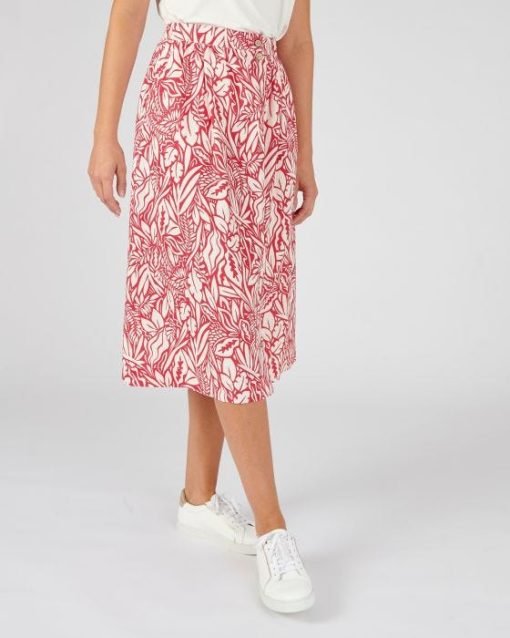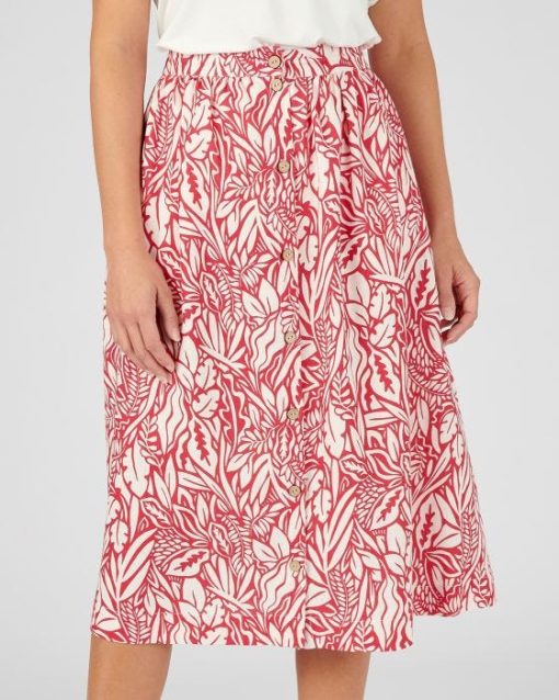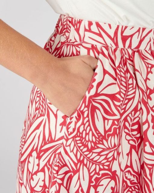 Femme Prêt-à-porter Jupe Mélange Lin Fleurie – Jupe – Damart.fr | Rouge Feuillage