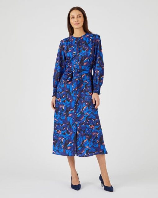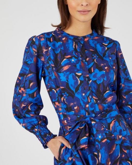 Femme Prêt-à-porter Robe-chemise Fantaisie Smockée – Robe – Damart.fr | Bleu Fleuri