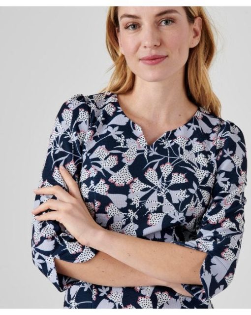Sa maille est en jersey stretch texturé : elle vous laisse libre de vos mouvements et assure une allure élégante. Sa coupe droite féminine, est joliment soulignée de découpes allongeantes devant et d’une fente d’aisance dos. Les plis en tête de manches donnent un effet légèrement bouffant. Petit plus : une robe très facile d’entretien qui ne nécessite pas de repassage. Vous la portez avec une paire d’escarpins et une veste unie reprenant une tonalité de l’imprimé pour un look habillé. Col rond avec petit V devant. Manches 3/4 fendues. Longueur 102 cm environ.