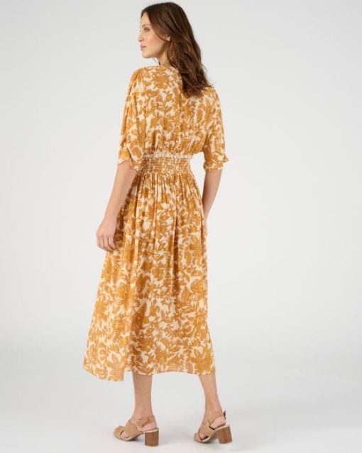 Une longueur actuelle, une taille smockée, des manches avec plis fantaisie, un tissu viscose reliéfé fluide… cette robe enchante les beaux jours !