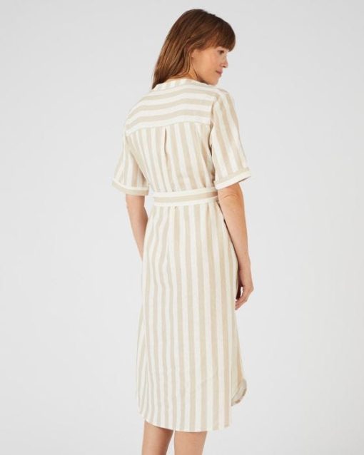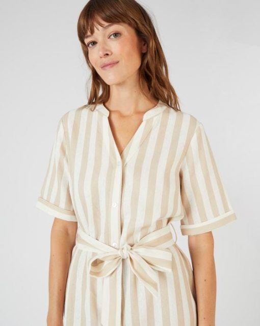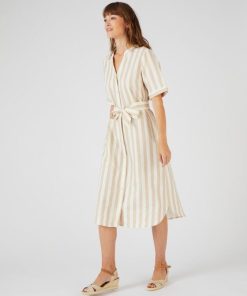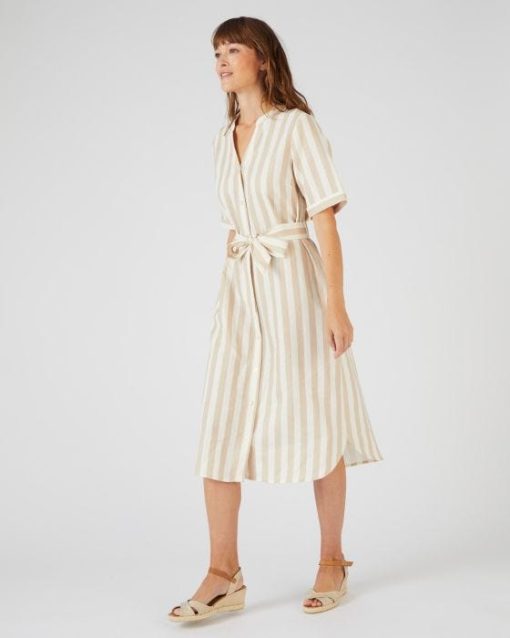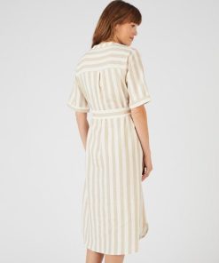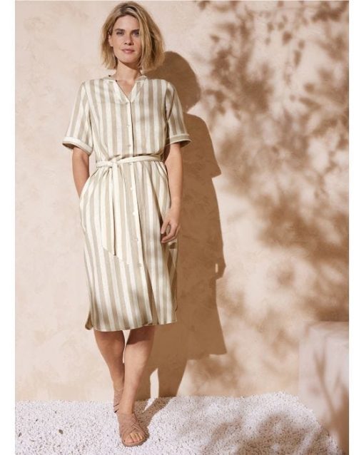 Femme Prêt-à-porter Robe Rayée Mélange Lin – Robe – Damart.fr | Beige Rayé