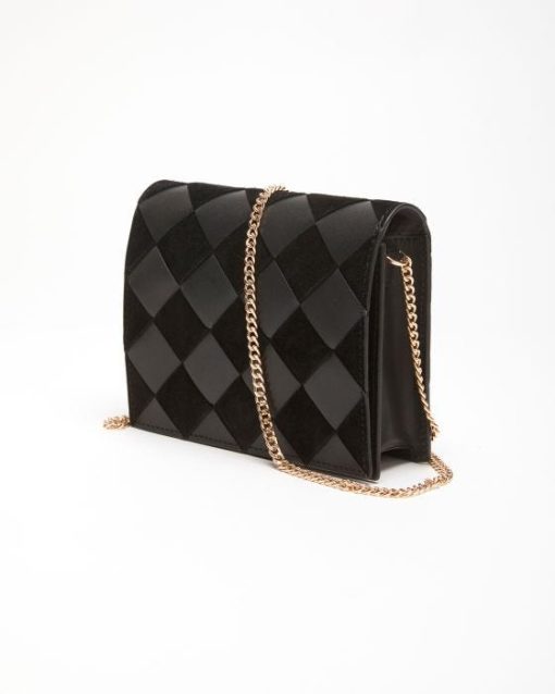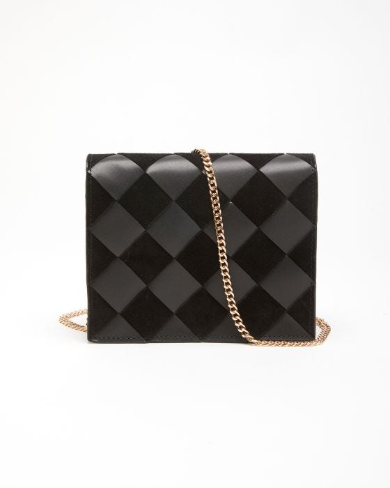 Un sac qui vous surprendra par son jeu de tressage effet damier associant un cuir de vachette et un cuir aspect suédé. Bride chainette métallisée. Finitions surpiquées. 1 poche intérieure. Dimension du sac femme 20 x 6 x 15 cm environ. Accessoires maroquinerie femme.