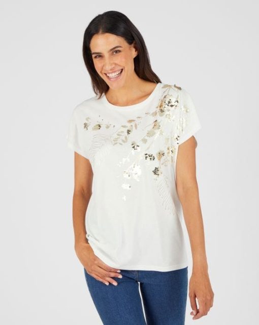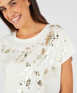 Naturellement éclatant : brillez avec le t-shirt en mélange coton et modal à sequins !