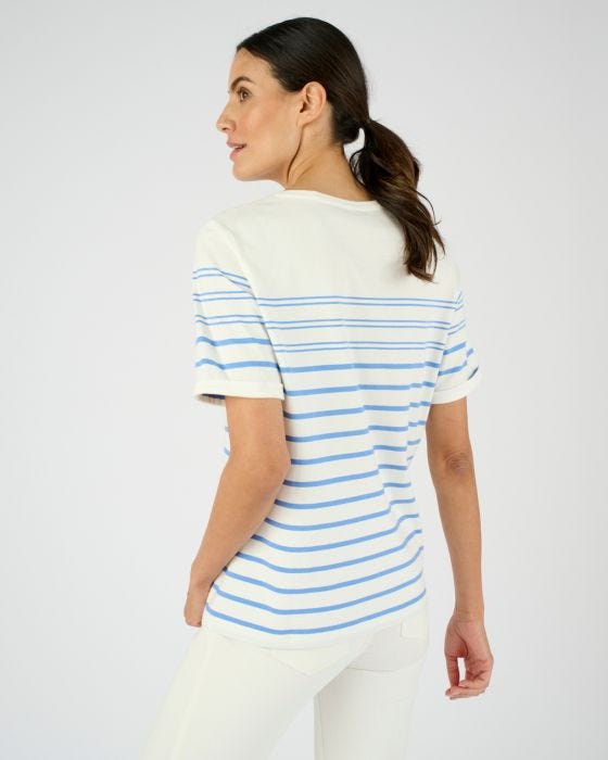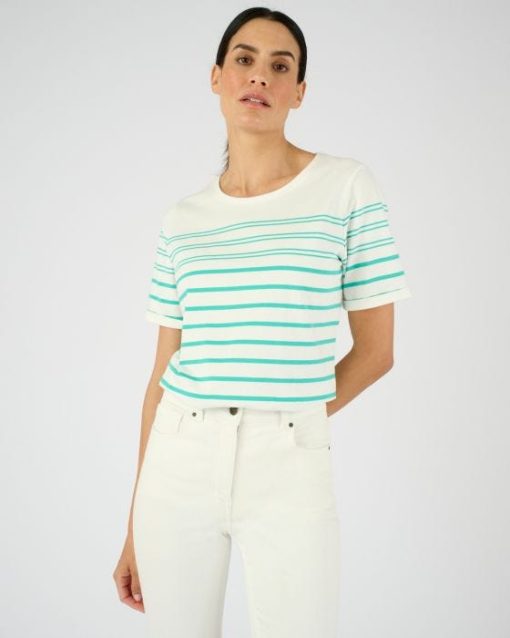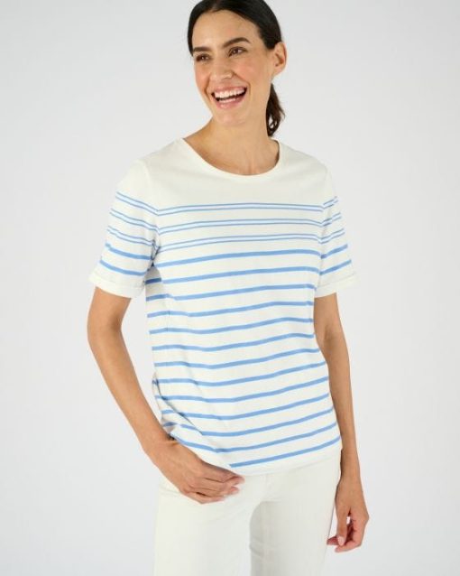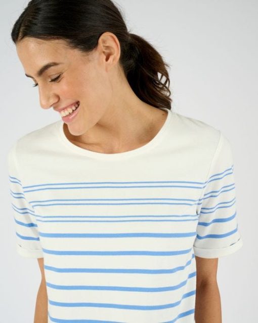 Femme Prêt-à-porter T-shirt Marinière Pur Coton – T Shirt – Damart.fr | Bleu Rayé