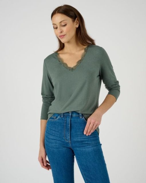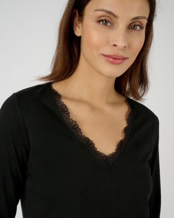 Jolie dentelle, maille jersey souple, douceur et chaleur sont les maîtres mots de ce T-shirt manches longues !