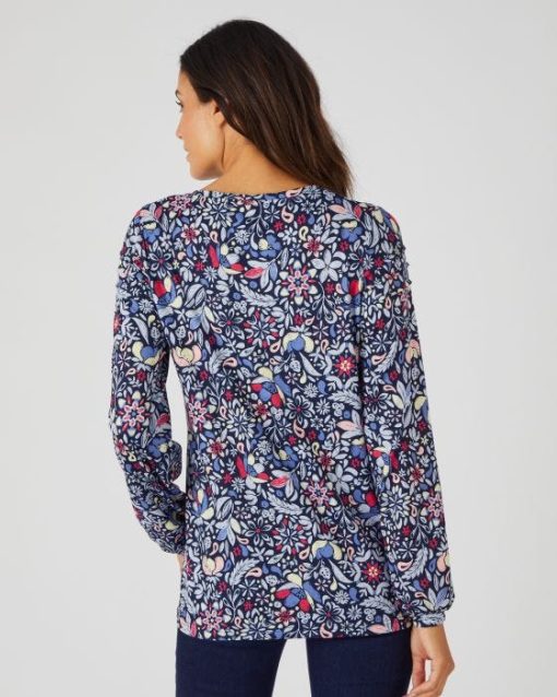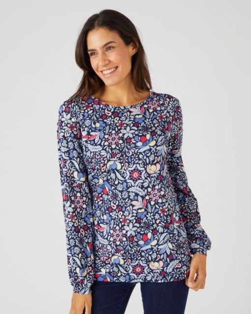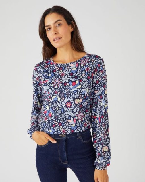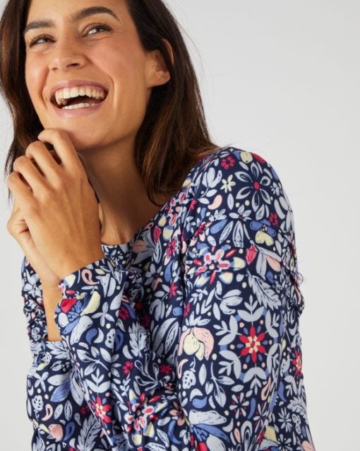 Un joli détail de plis nervurés dans le haut des bras, un poignet resserré pour un effet légèrement bouffant : de petits détails de confection qui placent ce tee-shirt imprimé dans le palmarès de nos coups de coeur de la saison. Ajoutez une maille toucher peau de pêche, fabriquée à 92% en polyester recyclé et enrichie de 8% d’élasthanne et voilà ce t-shirt manches longues qui gagne encore quelques places ! Encolure ronde. Longueur de ce T.shirt femme : 64 cm environ.
