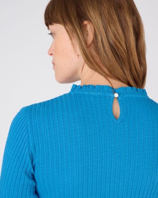 Tout en féminité, un col volanté habille délicatement ce tee-shirt qui se fait très pimpant et joue dans la cour des grands